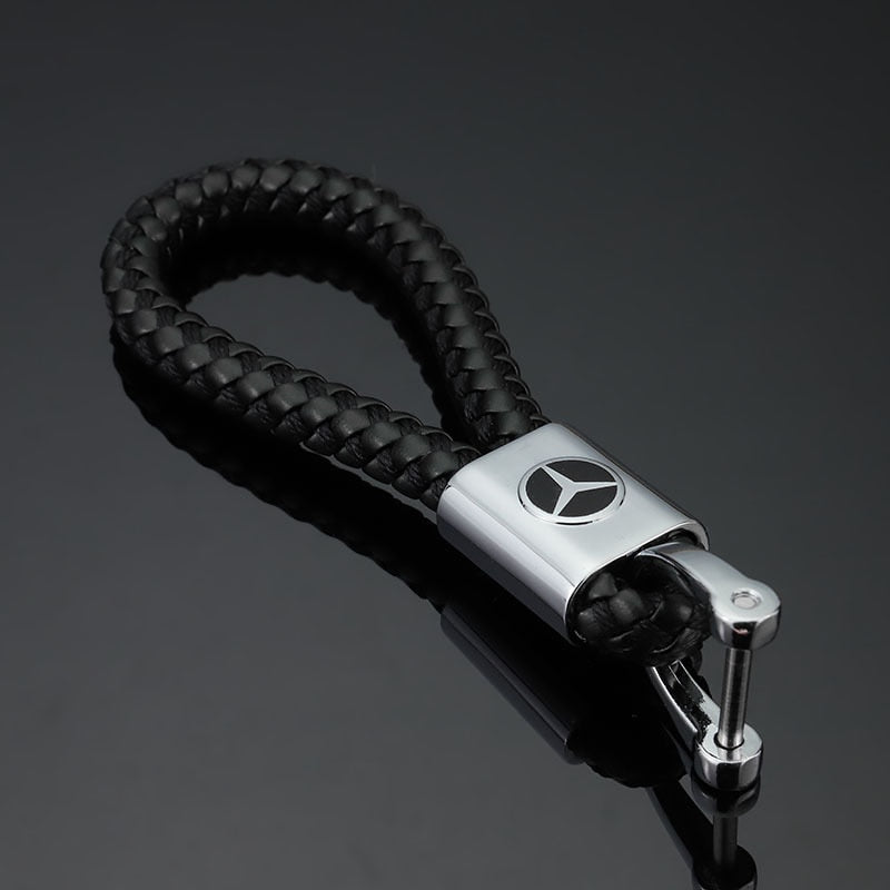 Creative metal car keychain Mercedes-Benz Skoda modern logo woven rope leather keychain