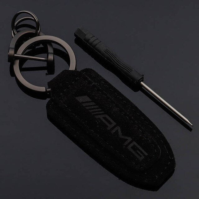 Fashion M tri-color standard Mercedes-Benz AMG Audi RS Audi Sline Volkswagen R hairy suede car leather keychain